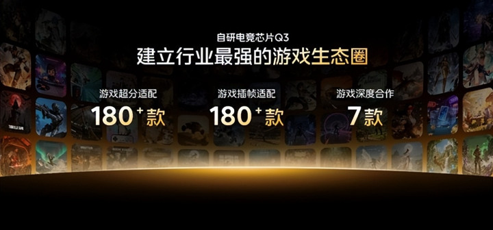 自研电竞芯片Q3现已适配180+款PC级游戏超分、180+款PC级游戏超帧和7款头部游戏超分超帧,并携手10大Top级游戏迈入真2K视效时代、4大顶流FPS游戏带来领先枪战体验,并成功落地全场景自研光线追踪技术。