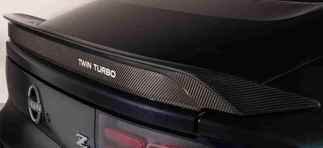 外观方面,新车采用了专属的午夜紫车漆,并且搭配了复古风格的“Twin Turbo”拉花,同时,19英寸的青铜轮圈,也进一步提升视觉冲击感。此外,碳纤维的后扰流板展现出高性能的一面。