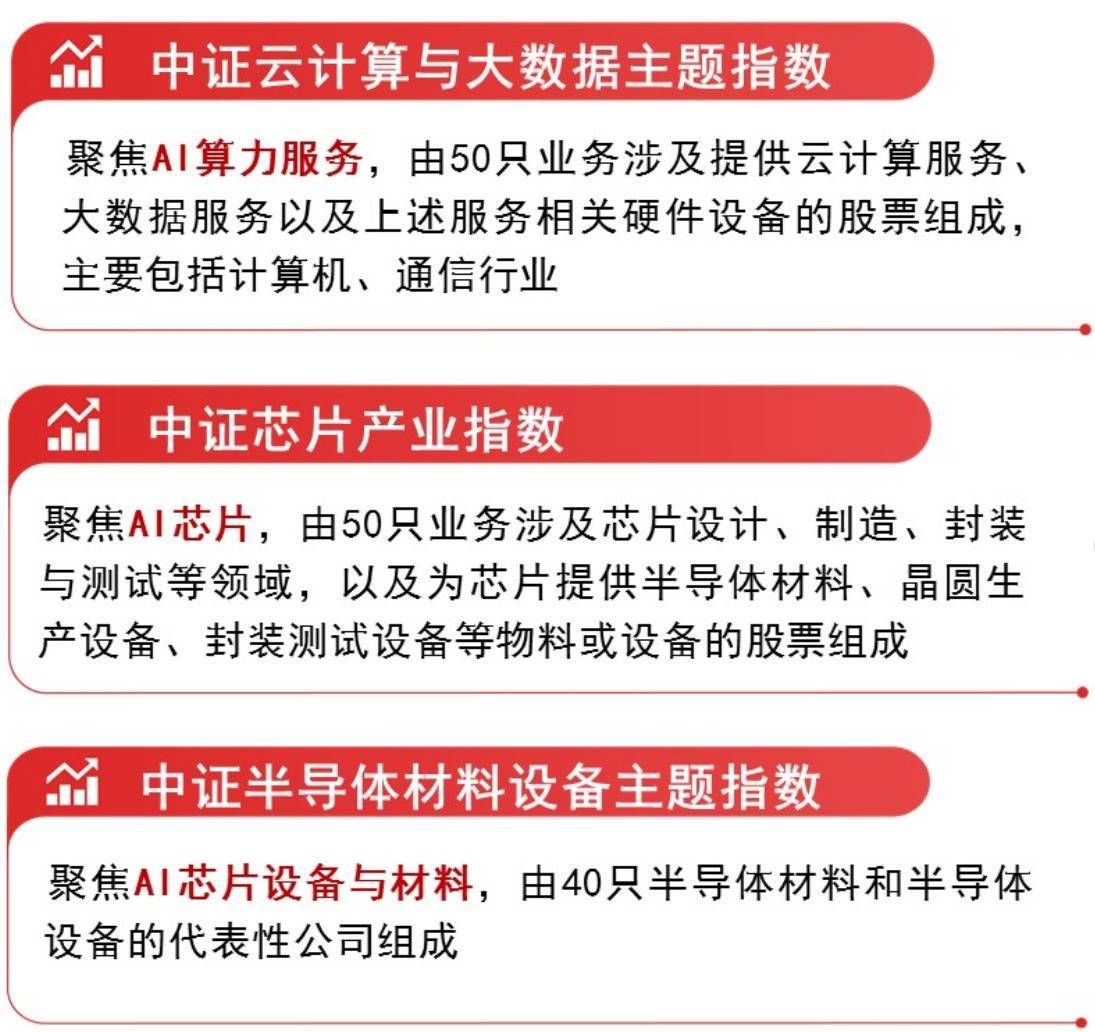 据 WIND 资料,目前市场上跟踪规模靠前的三只 “未来计算” 主题指数分别为中证云计算与大数据主题指数、中证芯片产业指数、中证半导体材料设备主题指数。